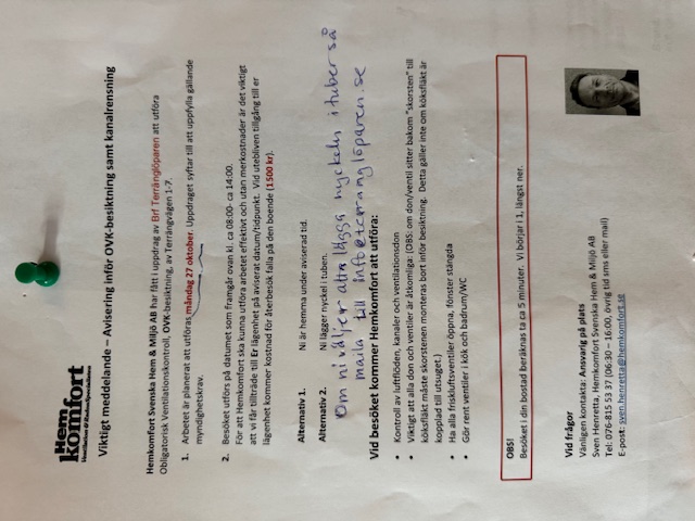 Viktig information om obligatorisk ventilationskontroll i alla lägenheter den 27/10